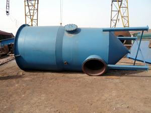 BLS-8L湿式立窑除尘器的设备结构与工作原理:除尘塔由外塔和副塔组成,均用不锈钢板制造。外塔直径2.4m,高12.7m。副塔直径0.5m,设于塔中央,喷淋洗涤用8个旋流喷嘴沿外塔下部环形布置。灰水分离器为普通钢板制造,内壁采用“TO"树脂防腐有效直径2.8m,全高4.3m,中央设有用减速机来牵动的集泥装置,集泥臂上的犁铧沉积的灰泥刮向中心而排出。当集泥臂因故住时,即可停止运行,同时发出声光警报,经处理后,仍恢复不了运行,应用了工清灰。集泥臂卡住是停电或长时间不排泥造成的,停电时间越久,故障越严重,因此要求用户配备双电源。